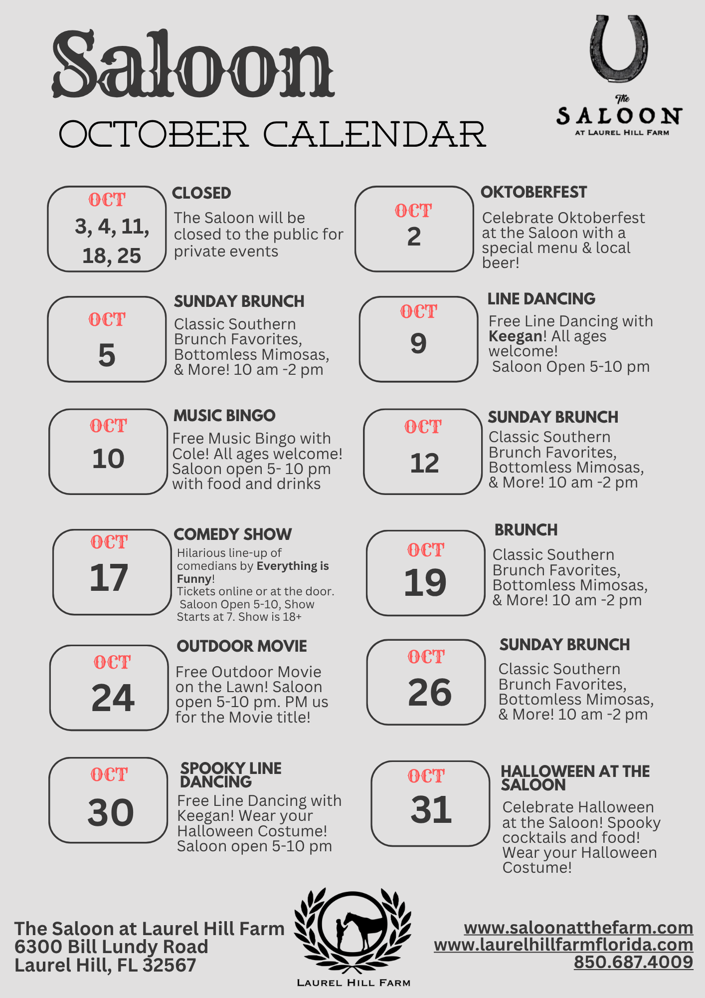 Check out the Saloon’s Weekly Events! We update this graphic every Monday!