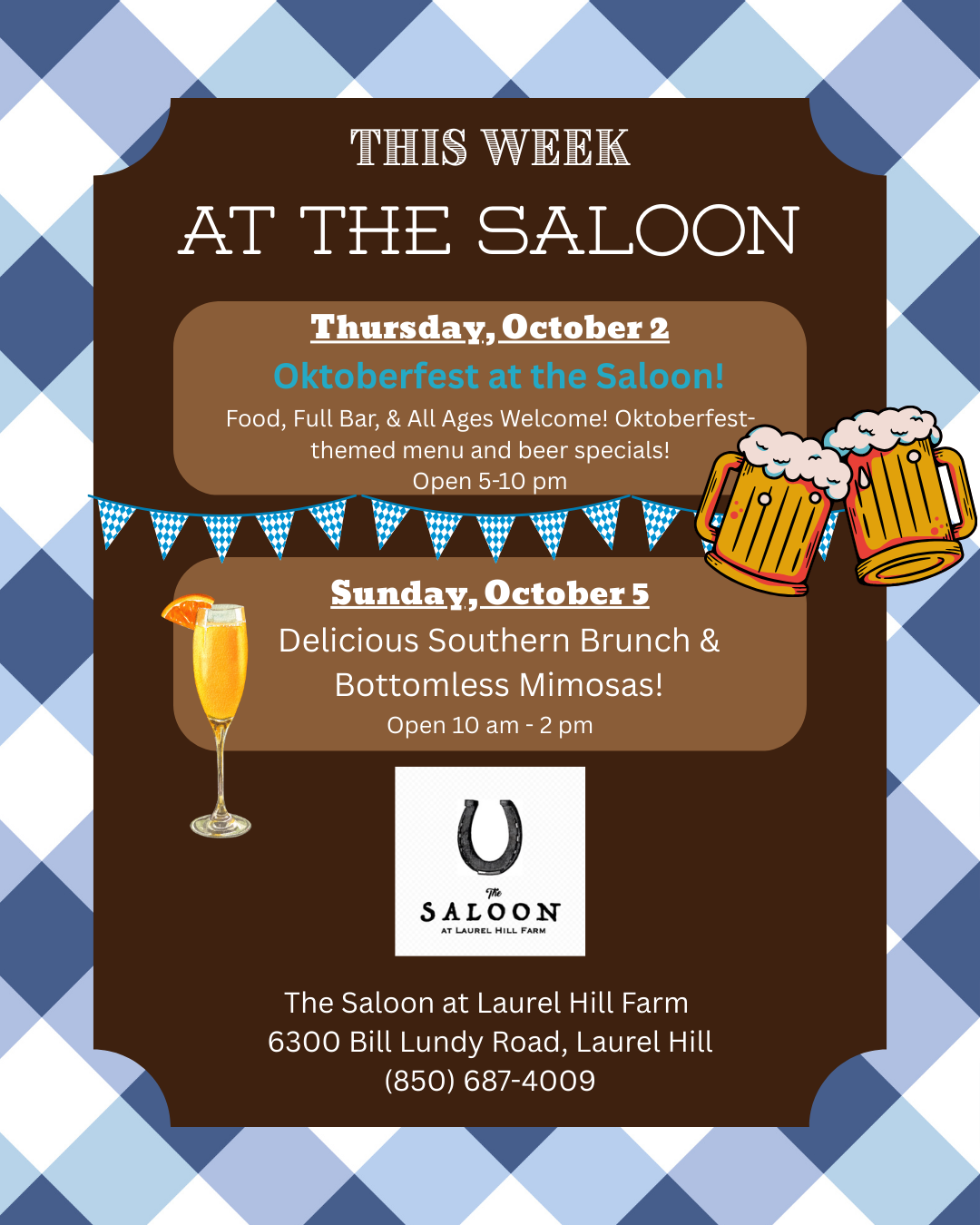 Located in Laurel Hill, FL, The Saloon serves up elevated Southern Food and Handcrafted Drinks, hosts Lively Weekly Events, and offers a Unique Setting for Private Gatherings